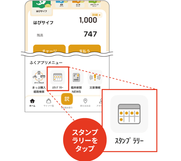 ふくアプリ加盟店で使用できる「はぴサイフ」のポイントになります。